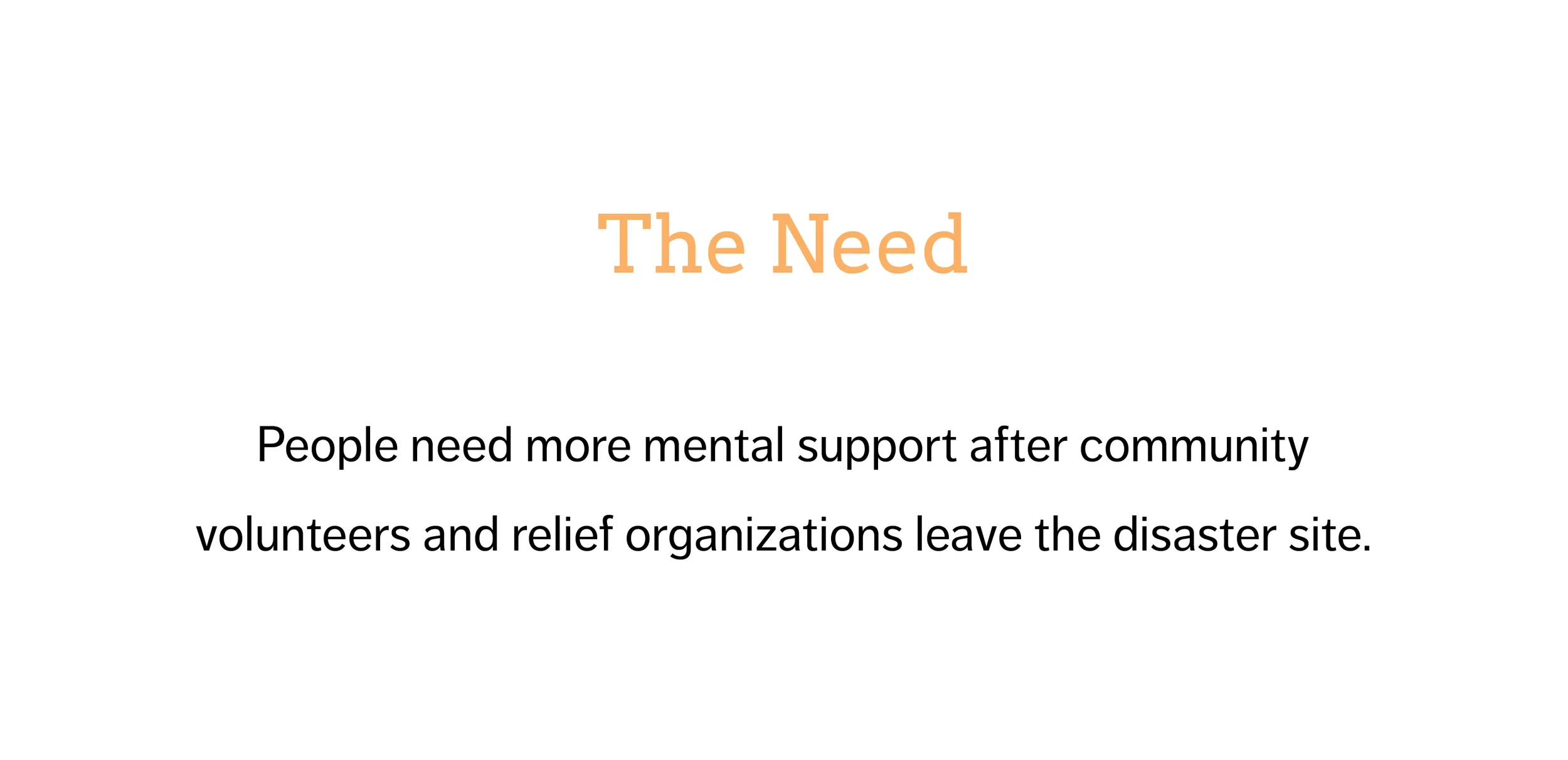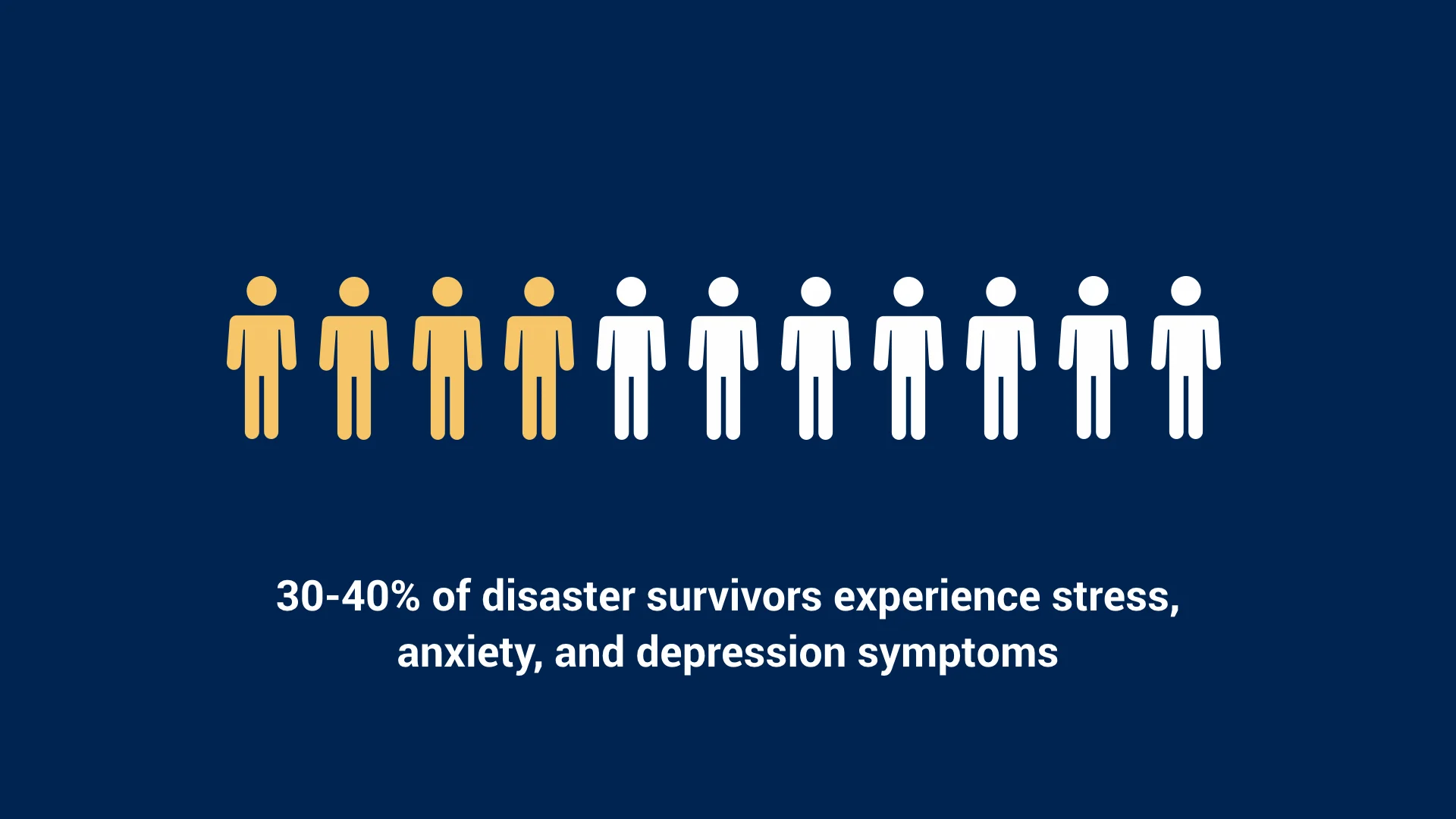 While it is evident that disasters result in a huge physical loss, the magnitude of destruction on the mental well-being of those who survive is just as detrimental. 30–40% of people affected by natural disasters will experience Post-Traumatic Stress Disorder (PTSD), depression, or anxiety symptoms.