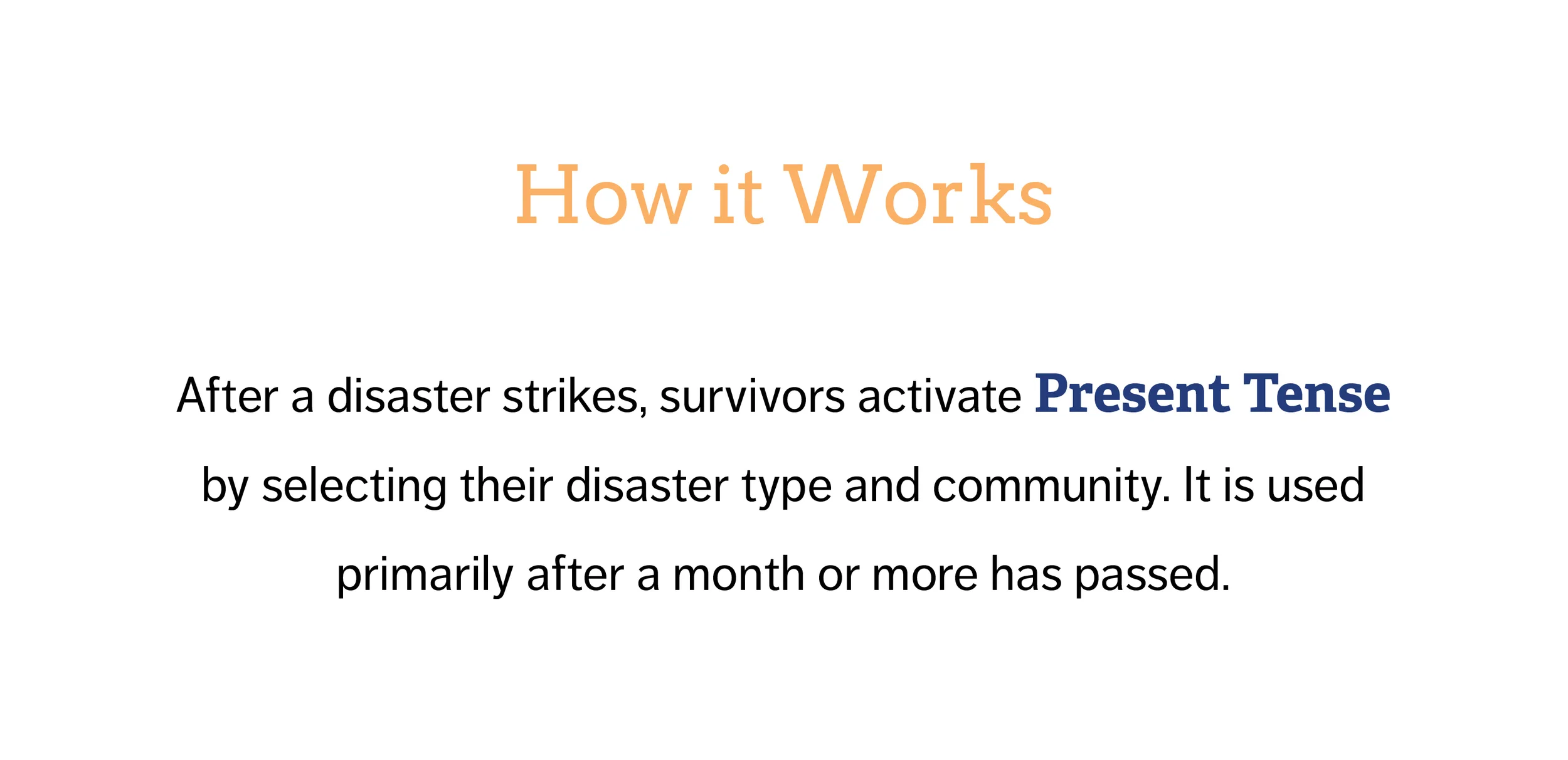 By harnessing the power of crowdsourcing and receiving funding from relief organizations, Present Tense will begin with one community’s disaster and expand into a nation-wide network.