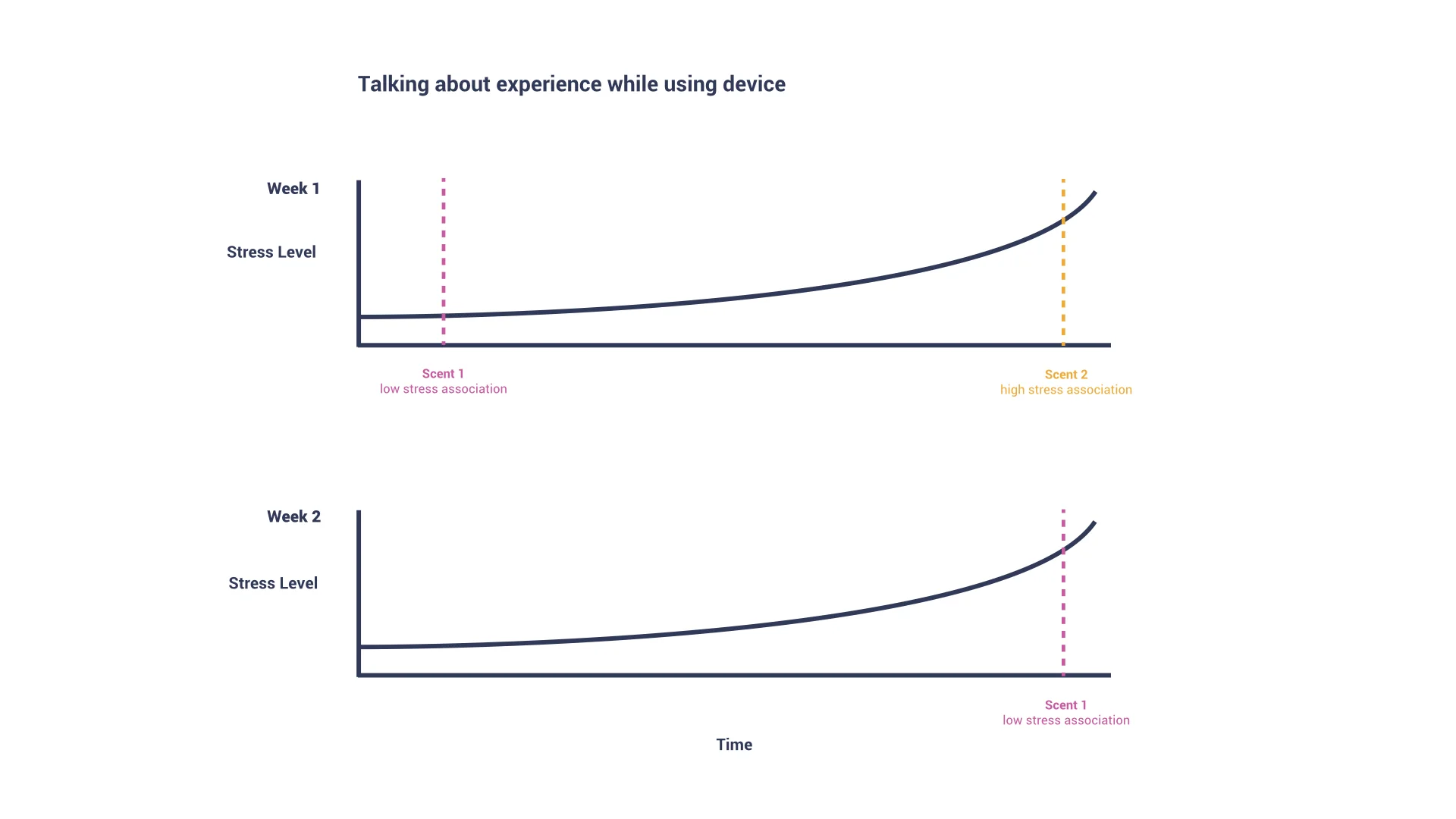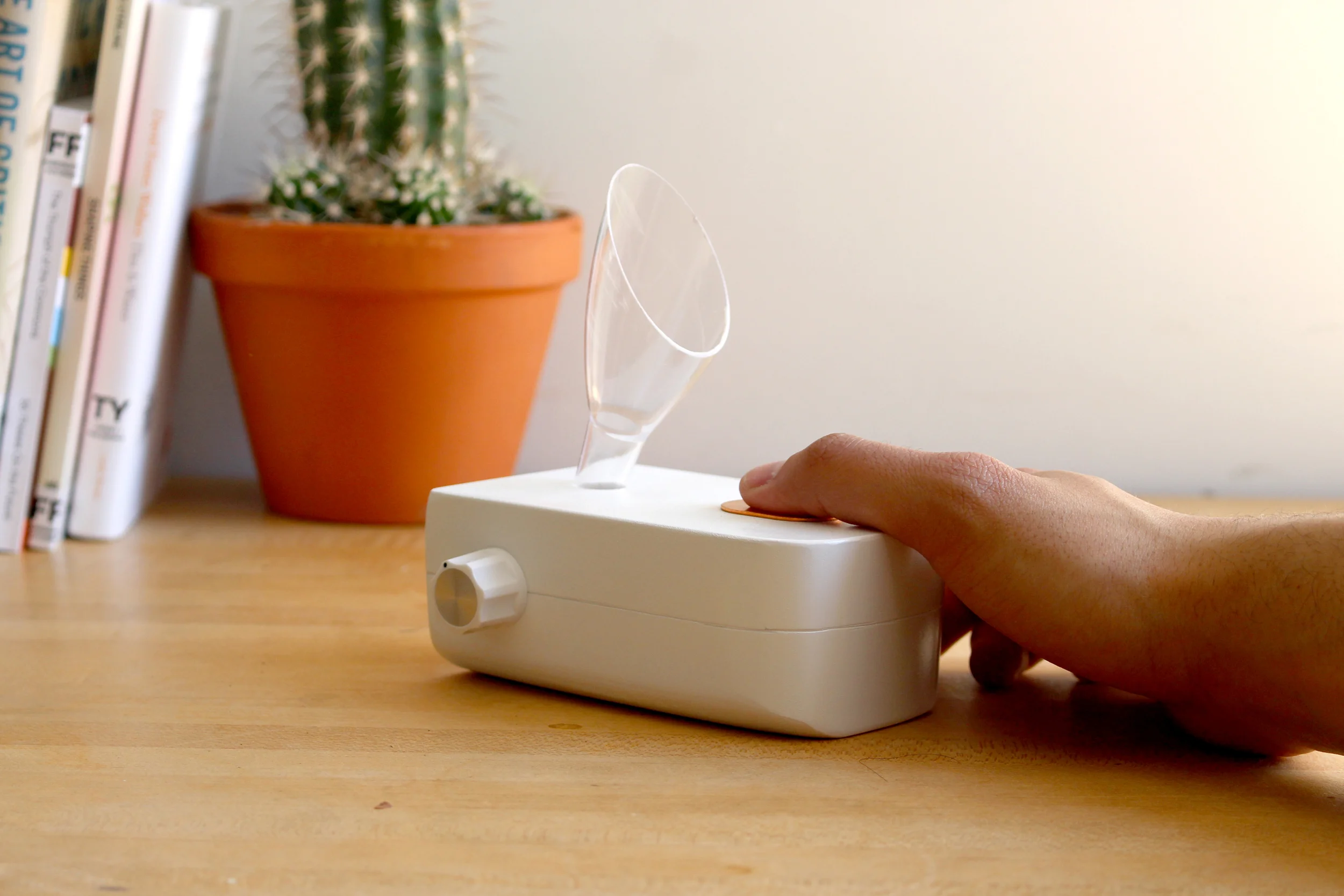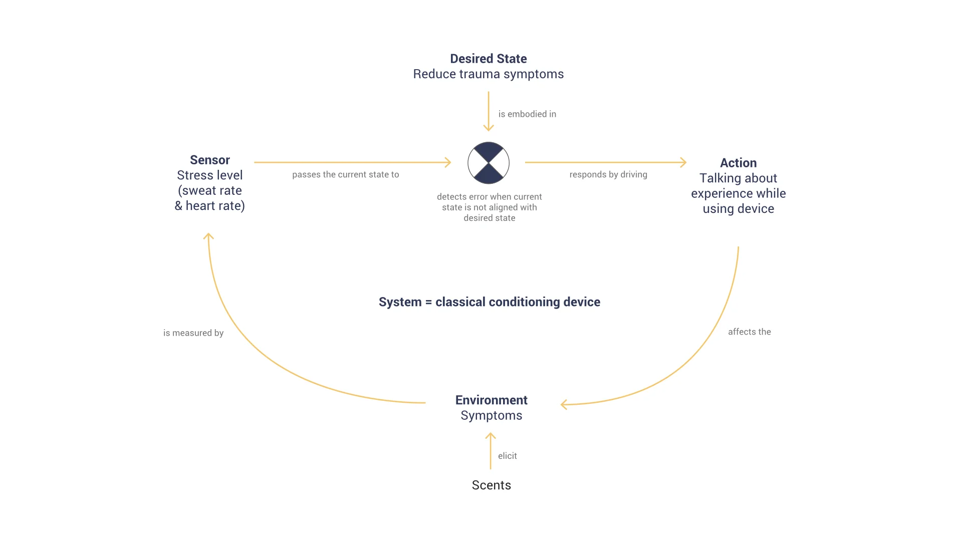 While a survivor talks about their experience, their stress levels are detected using a heart pulse sensor. By training the person to associate particular scents with specific levels of stress, and intentionally changing those stimuli at appropriate times, the device will help the person to re-learn their traumatic memories with new reactions. For instance, when the user is highly stressed, the scent they’ve learned to associate with low stress is emitted, re-wiring their brains to associate the most traumatic moments of their memory with calm physiological reactions.