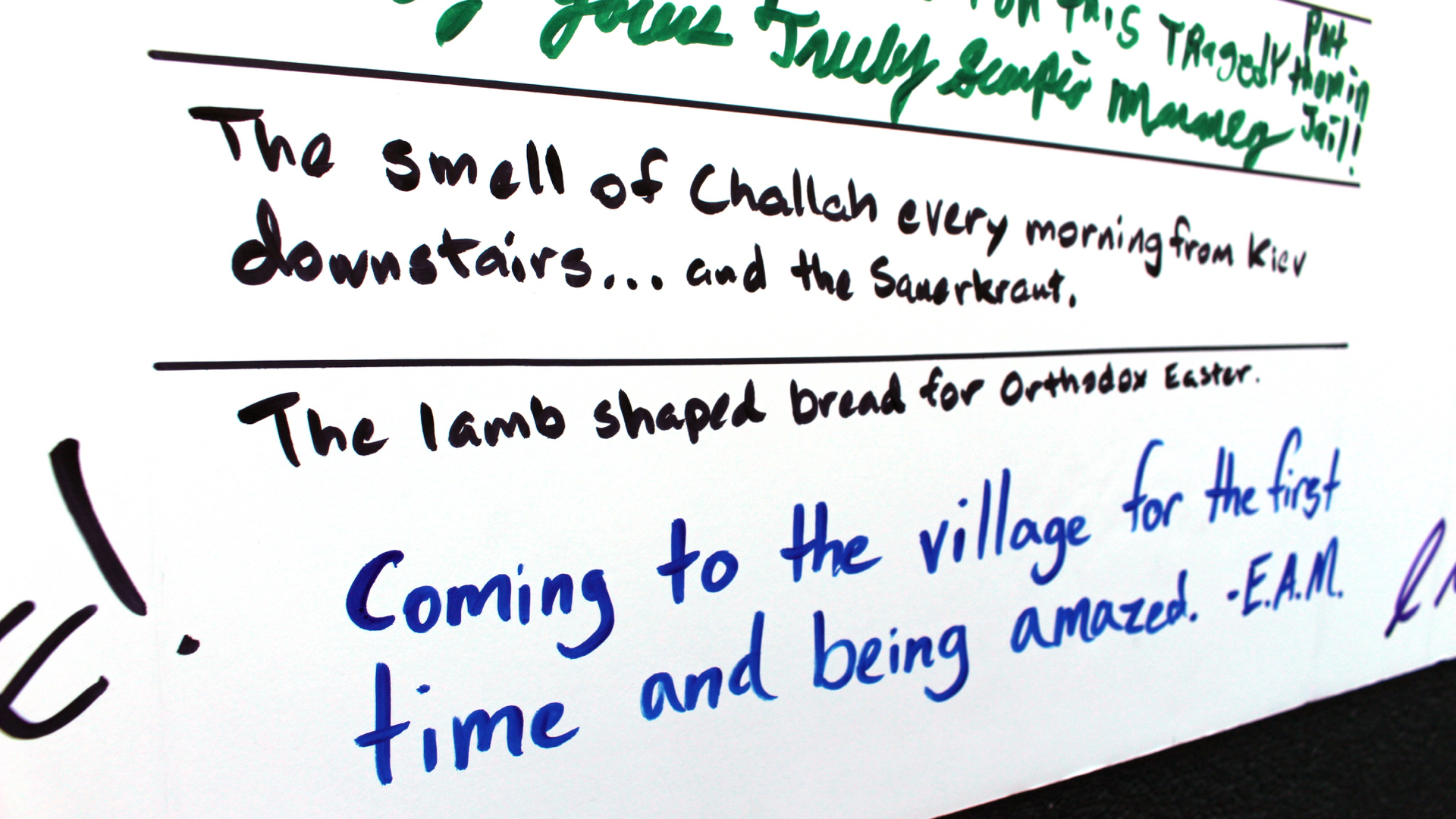 For part of the day, Ayaydin took a seat on a stoop close enough to see and hear what was going on, but far enough that no one would suspect she was associated with the project. Her absence gave passerby the permission to take time to view and add to the board without feeling pressured or judged.