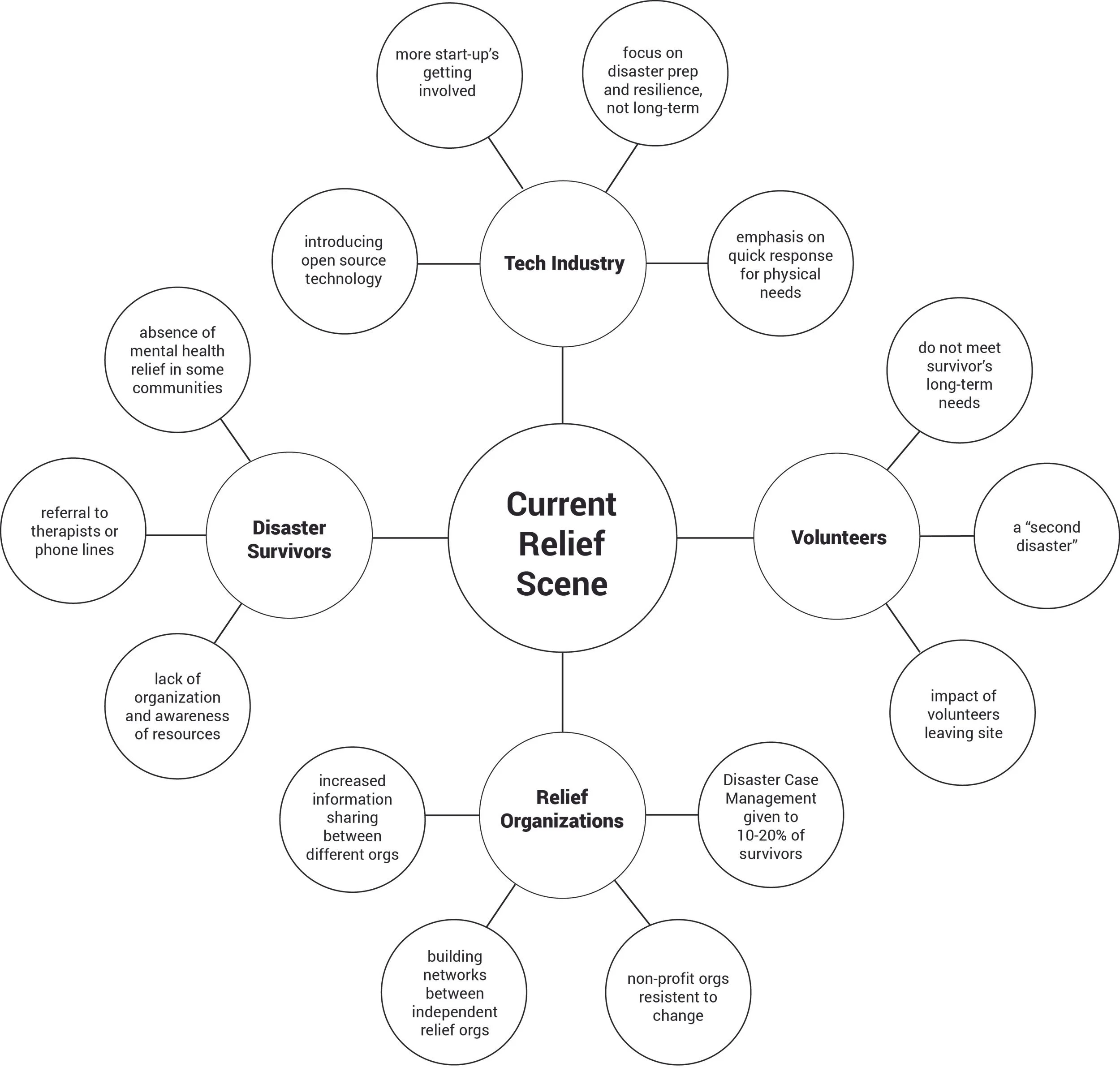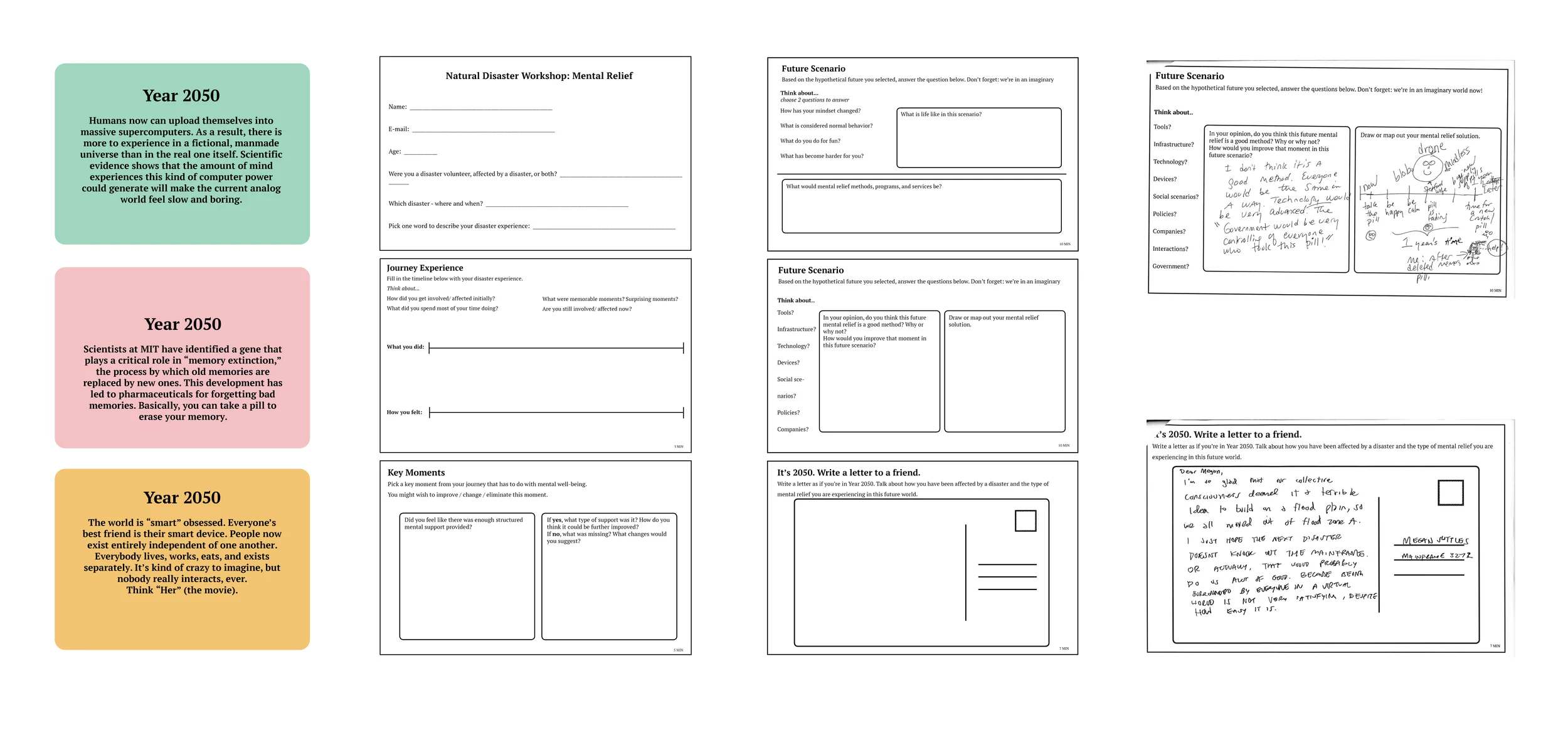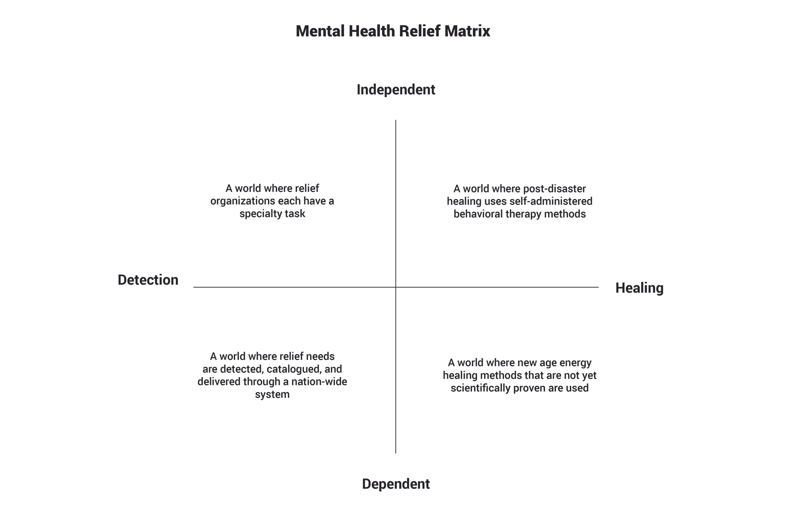 Having initially designed a physical service – a mental relief kit that takes into account the fact that people won’t have phones, internet, or power right after a disaster strikes - I eventually moved past designing for immediate response when physical needs are primary.