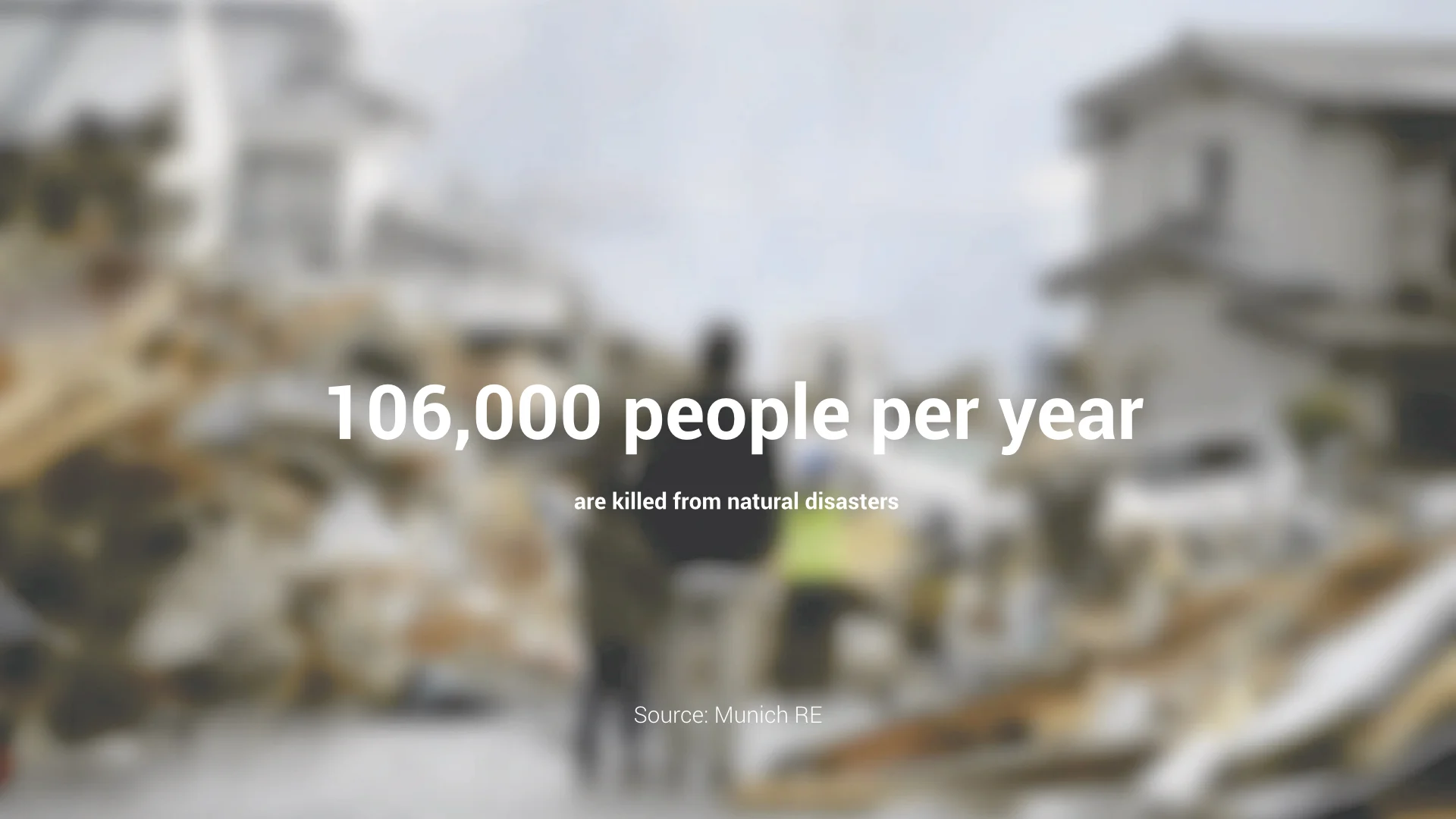 Natural disasters are comprised of a highly complex ecosystem, and the beating heart is the disaster victim. What is natural only becomes a disaster when people are involved – when their homes are struck by a tornado, when they’re injured from a storm, or when they lose a spouse in a hurricane. And unfortunately, the earth kills 106,000 people per year, on average.